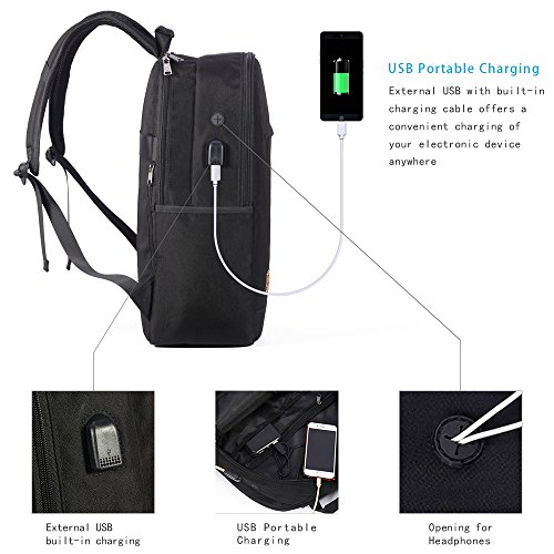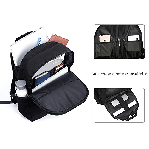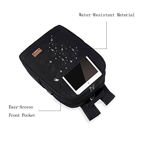 -. Feature : ♦Safety and Multifunction - Beyle's newly designed backpack has two main pockets, which provide a separate space for the laptop, thick partitions to better protect the laptop not be collided by the other sharp items in the bag. 11 INNER small pockets & 2 SEALED SIDE pockets, provides a separated space for your Laptop, phone, pad, pen, keys, wallet, books, clothes, bottle and more. Easy find what you want.. / ♦Large and Durable - Size 18.5 x 13.5 x 6.5 inch with dedicated Laptop compartment holds Laptops less than 17 Inch, to provide you with a large space. anti-scratch 1680D double-pile polyester for lasting durability. / ♦USB Interface - There's a USB charging hole on the side of the computer bag to allow you to charge without opening your backpack, Power bank not included. More convenient, Better save your time. Suitable for traveling, using at school, outdoor camping, business bag. / ♦Light and Water-resistant - Special super-light fabric, Reduce the weight of the backpack itself, slim backpack looks fashionable even fully packed, a better liberation of your shoulder. Our outdoor water resistant rucksack is made of washable polyester with super durable black-colored microfiber details to prevent deterioration and to maintain excellent appearance for many years. / ♦Warranty - We offers 90 days 100% satisfaction guarantee, if you have any quality problems within 90 days, we have the unconditional return policy.