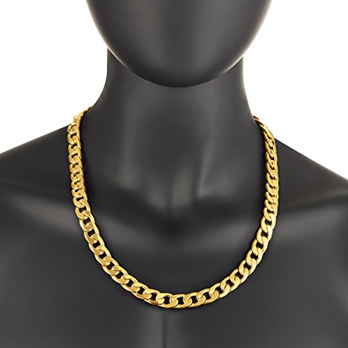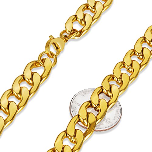 -. Feature : BONUS POLISHING CLOTH & VELVET POUCH - Includes a complimentary black velvet jewelry pouch and a dual-layered premium quality microfiber jewelry polishing cloth along with an instruction guide on how to clean, buff, protect & maintain a brilliant shine on your jewelry / POLISHED & DURABLE - This 14k gold plated curb necklace is 11.9mm wide (3.1mm thick) that fastens with a sturdy oval lobster clasp creating a luxurious experience of a traditional solid gold chain / CLASSIC & TIMELESS - crafted to lay flat, this symmetrical style of subtly twisted curb links complements any look with a lustrous shine perfect to be worn solo, stacked or adorned with a charm / QUALITY CRAFTSMANSHIP - constructed of anti-tarnishing, scratch-resistant stainless steel, this chain features a non-plated finish that is luminously polished to a radiant shine / ORDER WITH CONFIDENCE - Backed by a Lifetime Warranty against all manufacturer defects in material and craftsmanship
