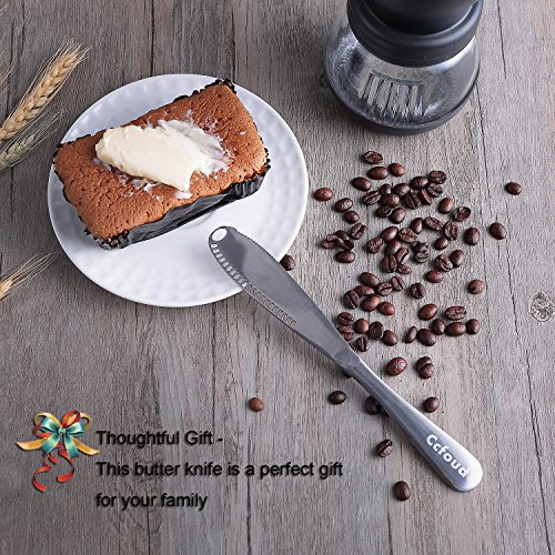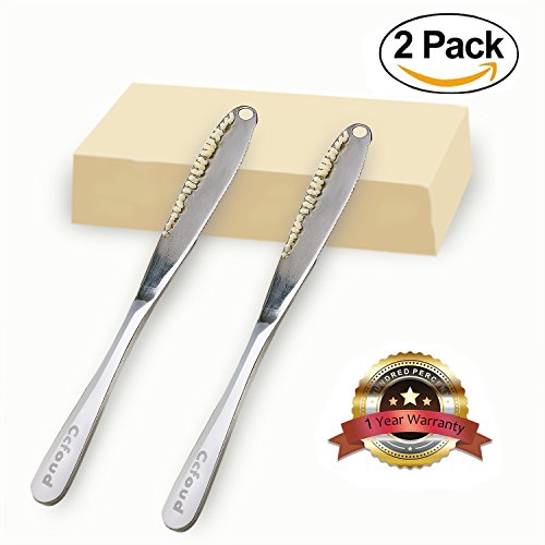 Butter Knife, 403 Stainless Steel Butter Curler with Jagged Edge for Spread Butter,Peanut and Jam,Easy Use and Grip by Ccfoud(Pack of 2)