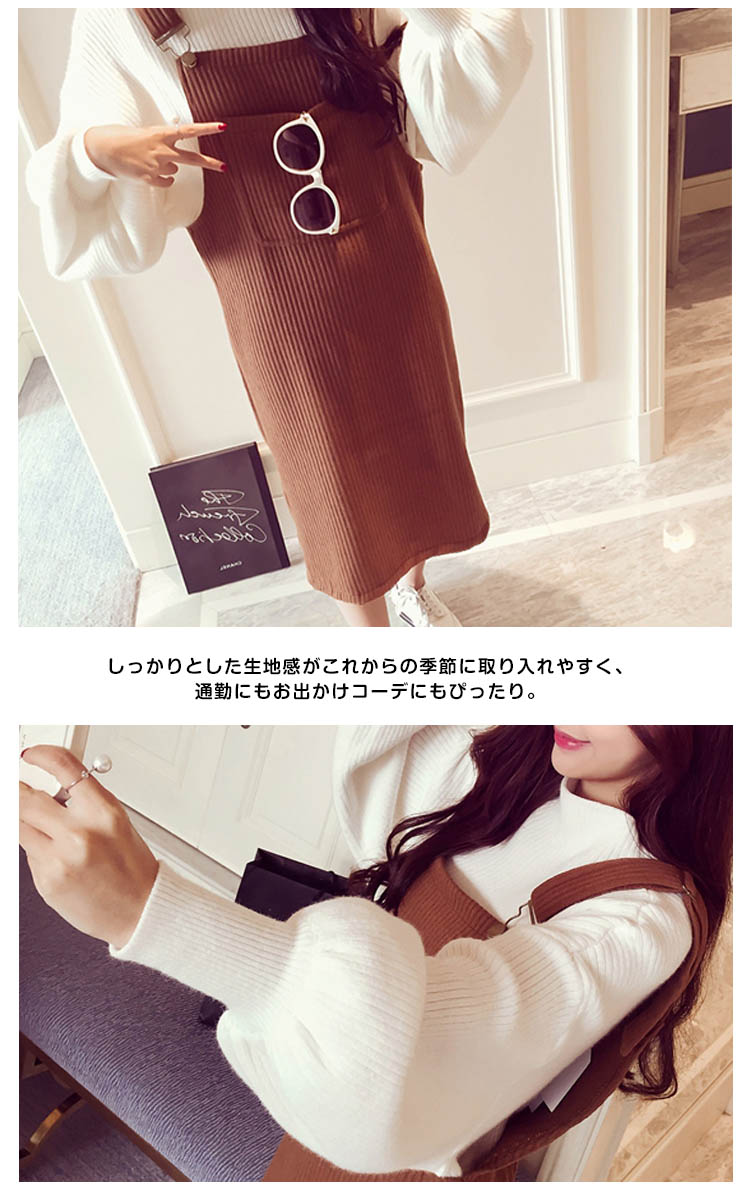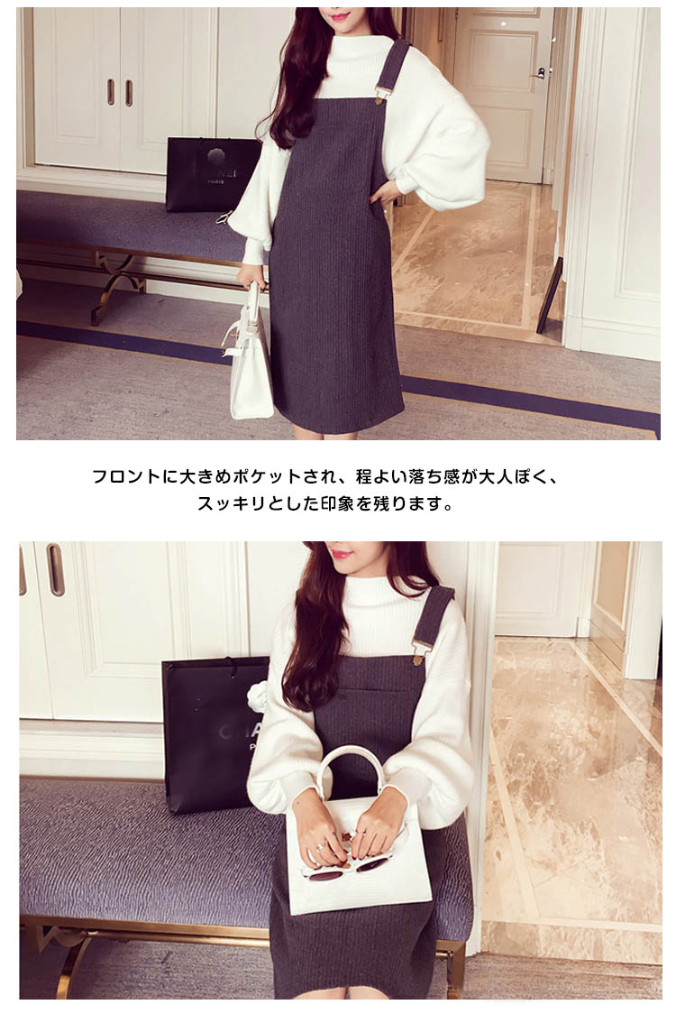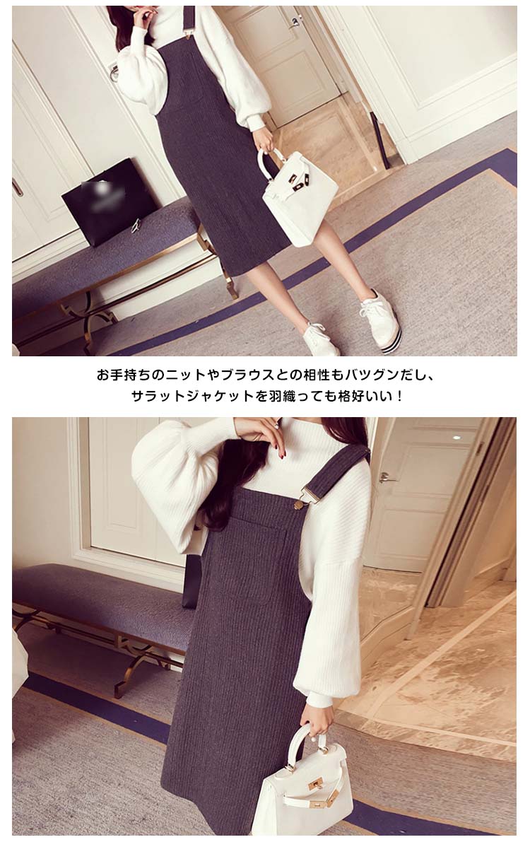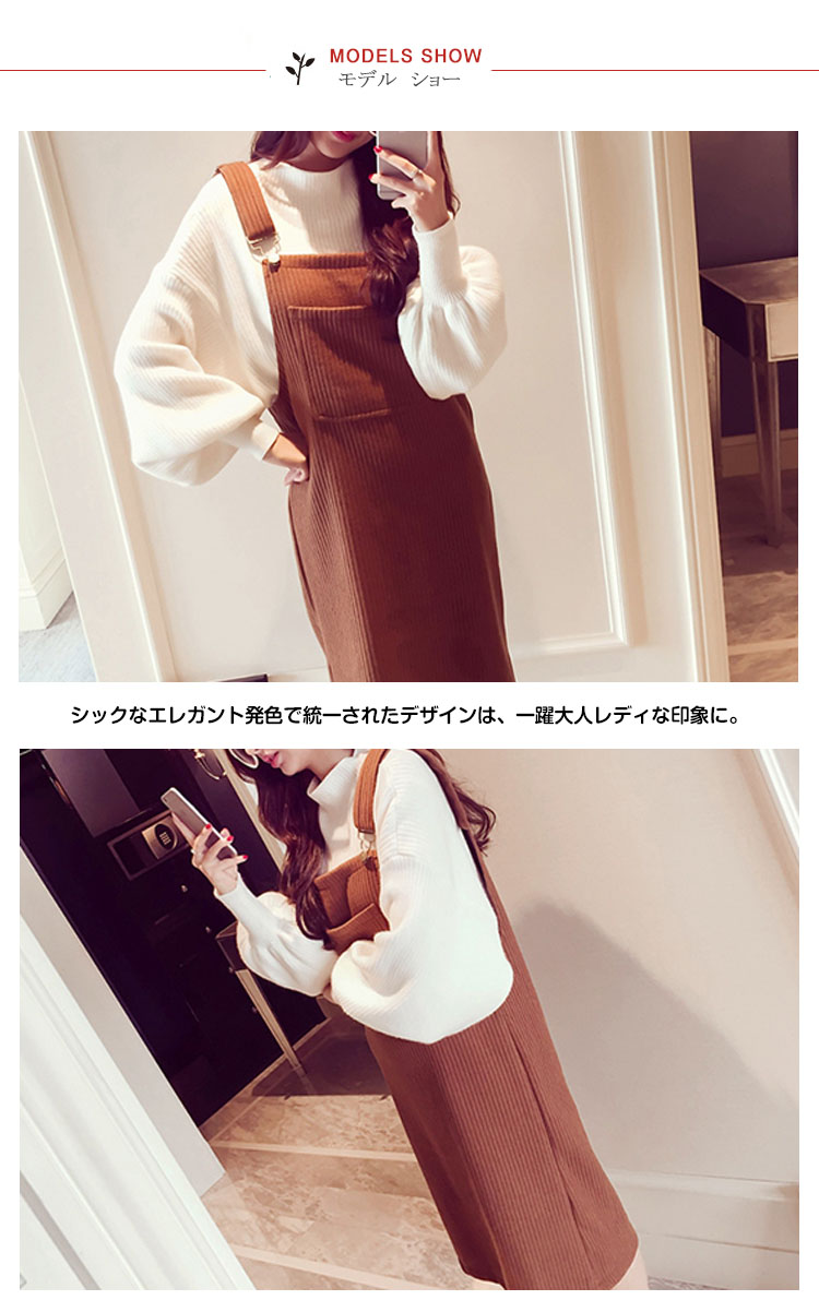 ジャンパースカートS 着丈98 ウエスト90 ヒップ90M 着丈99 ウエスト92 ヒップ92L 着丈100 ウエスト94 ヒップ94ニットトップスフリーサイズ 着丈52 肩幅52 袖丈41