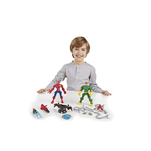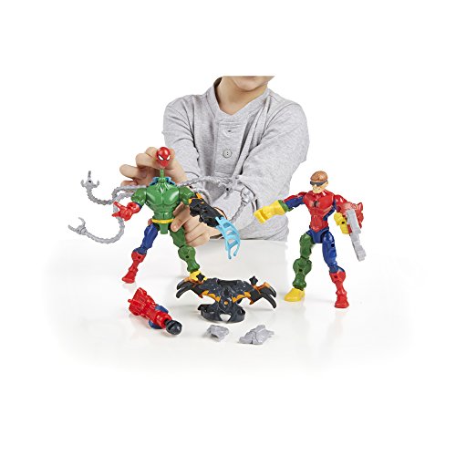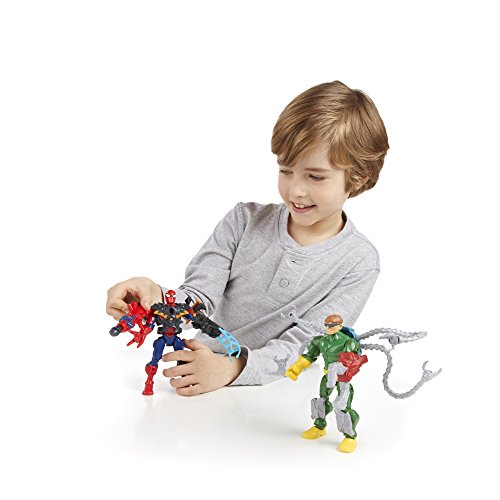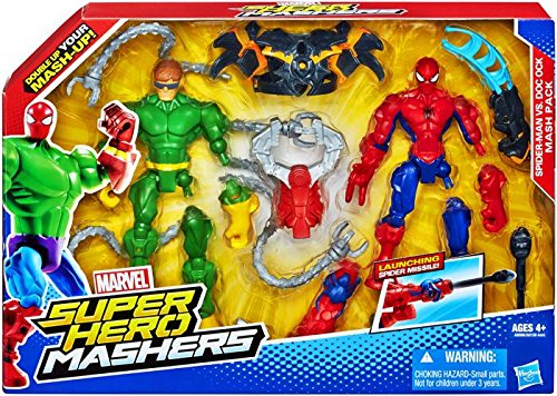 Customize for the ultimate mash-up duel with this awesome Mash Pack! Your Doc Ock figure looks just like the octo-armed supervillain and your Spider-Man figure has the powers of the web-slinging superhero. He's also armed with a launching spider missile! But you can make both of them even more powerful by mixing up their parts! All their parts are removable, so you can swap them between each other or other Super Hero Mashers figures (sold separately) to give each figure new powers. Your customized superhero adventures will be a mash-up of awesome with the Spider-Man Vs. Doc Ock Mash Pack! Marvel products are produced by Hasbro under license from Marvel Characters B.V. Super Hero Mashers and all related characters are trademarks of Hasbro.Feature
