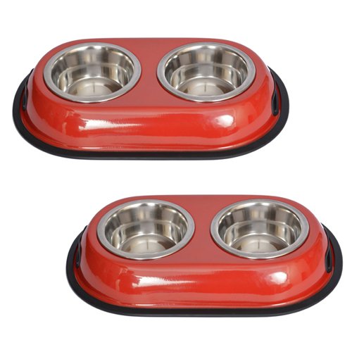 Product Description Iconic Pet double diner (Red) has colorful exterior that holds two stainless steel pet feeding bowls and blends with any type of home decor. 0