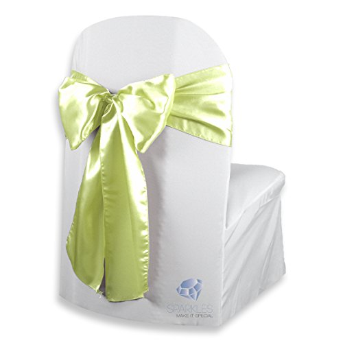 -. Feature : This is a 200 Pack of Brand-New 108 inch by 8 inch premium Satin chair cover bow sashes. / Brand-new premium Satin chair sashes. Perfect for weddings, banquets, parties, receptions, or any place you wish to create an elegant look. / Easy to tie into a beautiful chair bow, drape across any decoration, or use as an attractive table runner. / 100% brand new, first run production. / Each chair bow arrives untied and carefully folded.