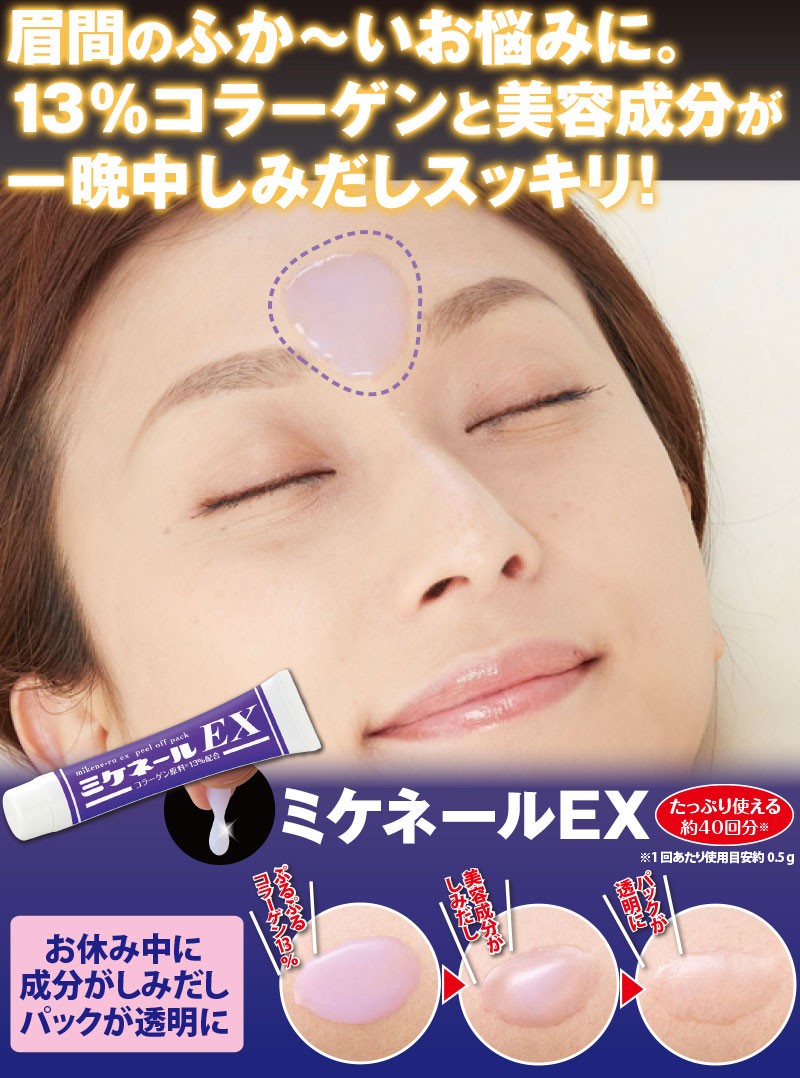| 商品説明 | 眉間のふか~いお悩みに。 13%コラーゲンと美容成分が一晩中しみだしスッキリ。 |