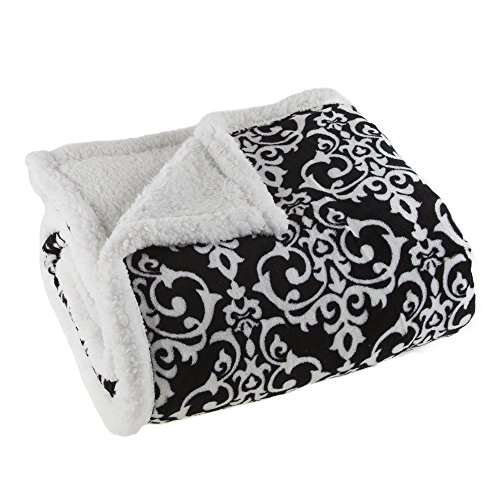 Lavish Home 61-00004-BW Fleece Sherpa Blanket Throw - Black/White