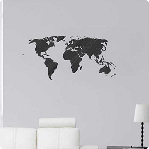 -. Title : 48" World Map Grid Lined Diagonal Atlas Continents Detailed Mural Wall Decal Sticker Art Mural Home Décor Quote