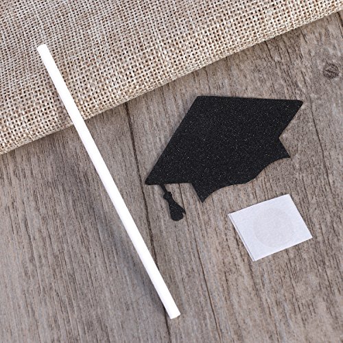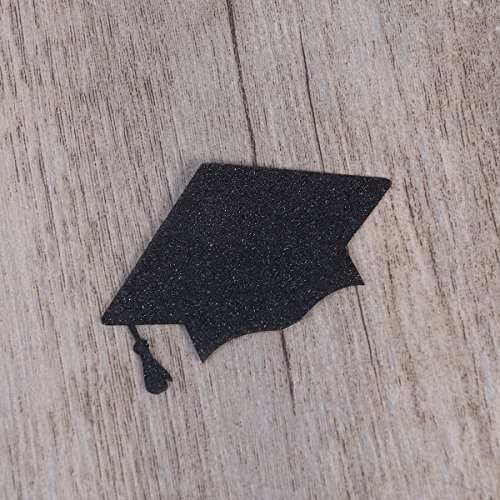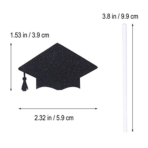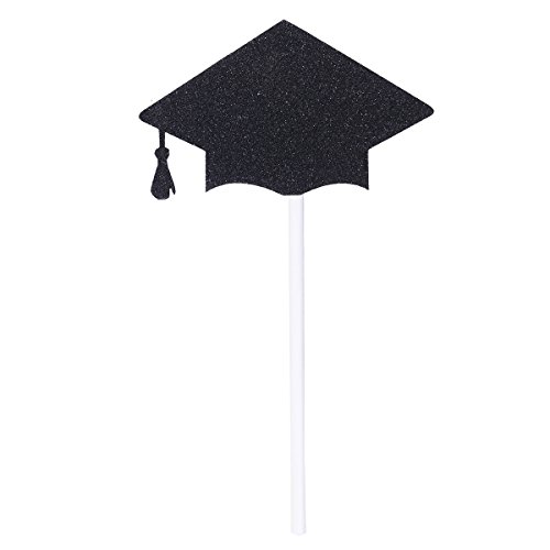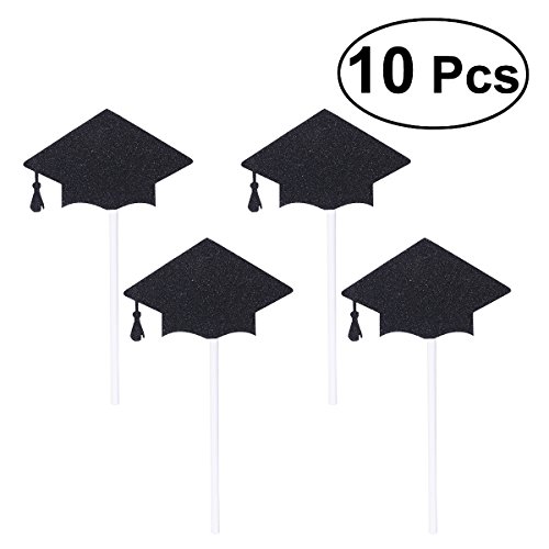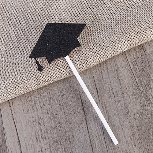 LUOEM Graduation Cupcake Toppers Glitter Doctorial Hat Cake Picks Cake Decorations Graduation Party Favors,Pack of 10 (Black)