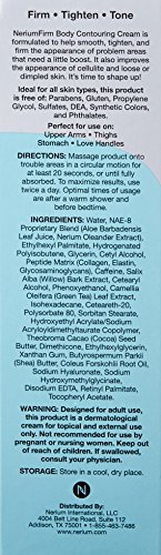 -. Binding : Health and Beauty -. Brand : NeriumFirm -. EAN : 0616312433698 -. Feature : Applying this product will help improve the appearance of cellulite and dimpling and help smooth, tighten, and firm the appearance of loose skin / Nerium Firm also helps restore the appearance of youthful contour, tone and texture. / Nerium Firm is the only contouring product on the market to utilize the patented NAE-8® extract / Nerium FIRM is a Contouring MIRACLE Cream that helps remove Cellulite. It also tones and firms your body / Nirium Firm is Powered by five other key ingredients chosen by experienced clinical researchers: peptide matrix, caffeine, white willow bark extract, green tea leaf extract, and forskohlii root extract -. Label : Nerium International -. Manufacturer : Nerium International -. Model : Firm -. MPN : Firm -. NumberOfItems : 1 -. PackageQuantity : 1 -. PartNumber : Firm -. ProductGroup : Beauty -. ProductTypeName : BEAUTY -. Publisher : Nerium International -. Studio : Nerium International -. Title : Nerium Firm -. UPC : 784672105422