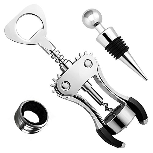 윙 타입와인 오프너보틀 스토퍼 드롭 링 합계3점세트 [병행수입품]