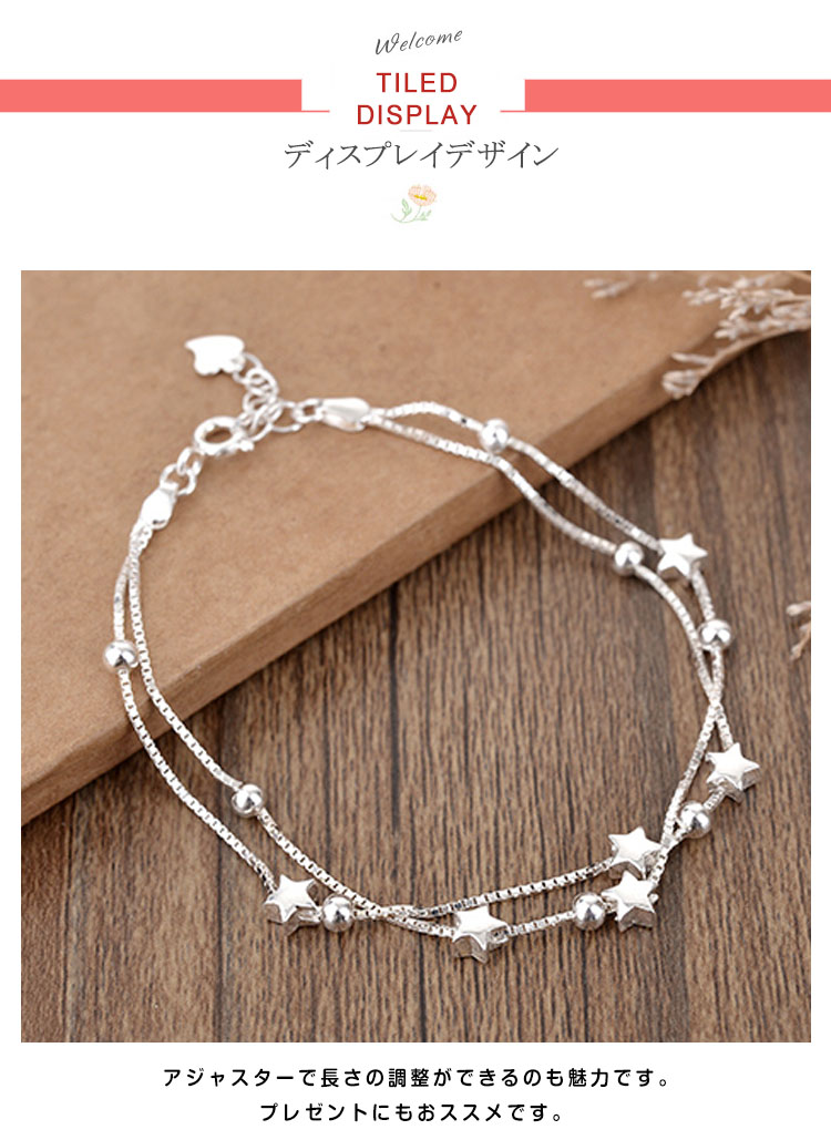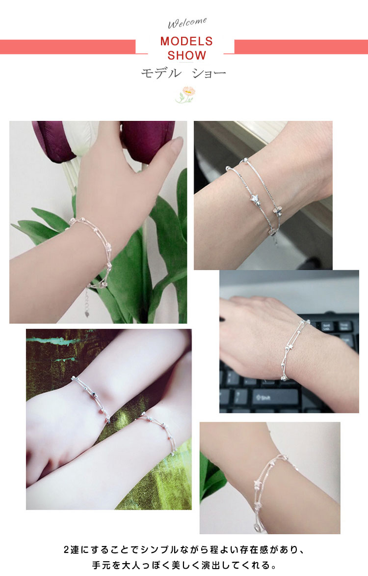 | 手元を華やかに演出してくれるブレスレット★2連にすることでシンプルながら程よい存在感があり、手元を大人っぽく美しく演出してくれる。アジャスターで長さの調整ができるのも魅力です。プレゼントにもおススメです。 | |