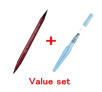 Pentel Brush Pen -Fude Roman- soft Type & Hard Type 2 Way & Aquash Water Brush Pen Profesional Arts Value set (With Our Shop Original Description of Goods)