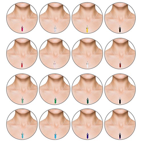 eBoot 16 Pieces Bullet Gemstone Pendant Hexagonal Chakra Crystal Pointed Quartz Pendants with Storage Bag, 16 Colors