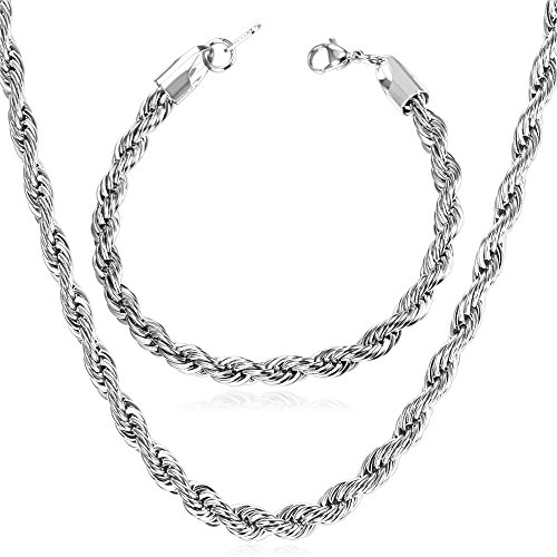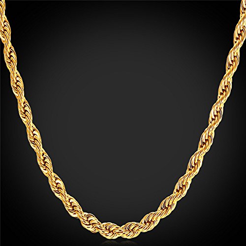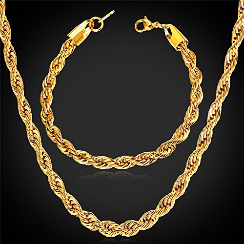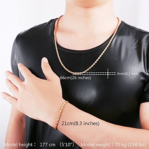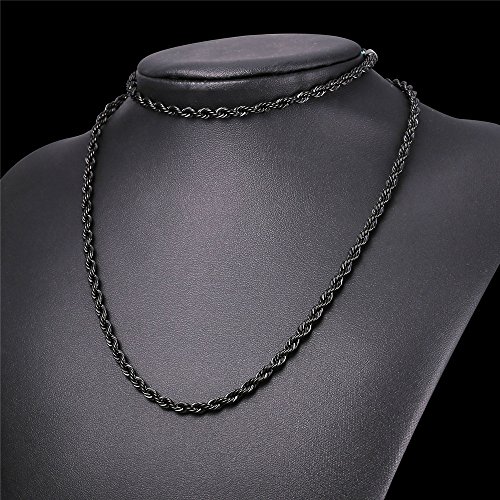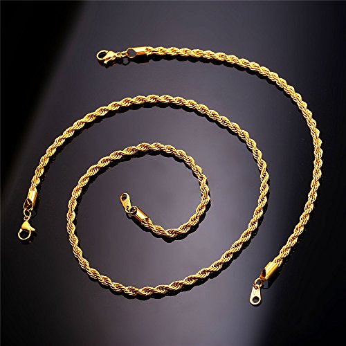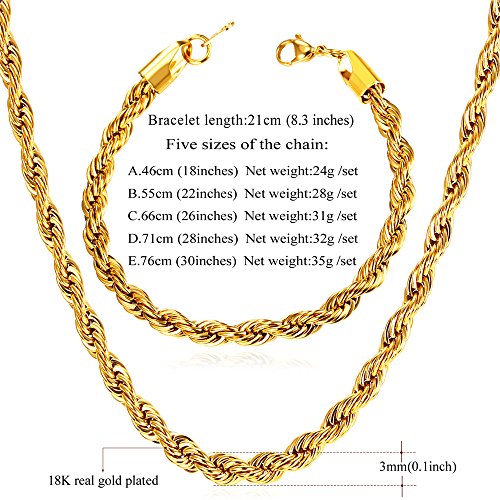 -. Feature : Classic Rope Chain,width: 3mm. / Necklace:18"-30",Bracelet:8.3 inches. / 3 Metal type: stainless steel/18k gold plated/bl;ack gun plated. / Come with a black velvet pouch and U7 design gift box. / Nickel free