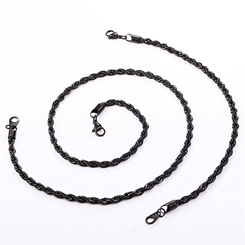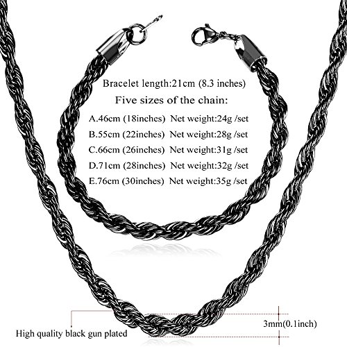 -. Title : U7 Thin Chain 3mm Stainless Steel/Black Gun Plated/18K Gold Plated Twisted Rope Chain Necklace Bracelet Set for Men Women