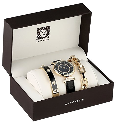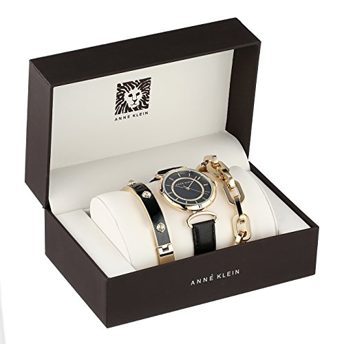Studio : AK Anne Klein Publisher : AK Anne Klein Binding : Watch Amazon.com .productDescriptionWrapper table{width:auto;}.productDescriptionWrapper *{box-sizing:content-box;-moz-box-sizing:content-box;-webkit-box-sizing:content-box;} The Anne Klein Box Set Collection Mix and match to your heart’s content with this eye-catching Anne Klein watch and bracelet set. Glossy black and glittering Swarovski crystals combine to create a look of effortless sophistication. The two accompanying bracelets make a breeze to take your design from day to night. - 38mm diam. round gold-tone case