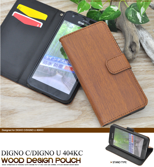DIGNO C/DIGNO U 404KC/KYOCERA S301用ウッドデザインスタンドケースポーチ