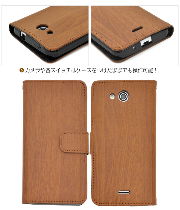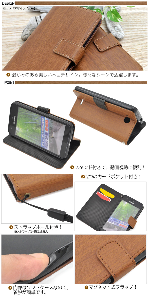 木目調のDIGNO C/DIGNO U 404KC/KYOCERA S301用スタンドケースポーチ。