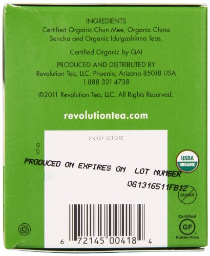 -. Title : Revolution Tea Green Tea, Organic, 16 Count (Pack of 6)