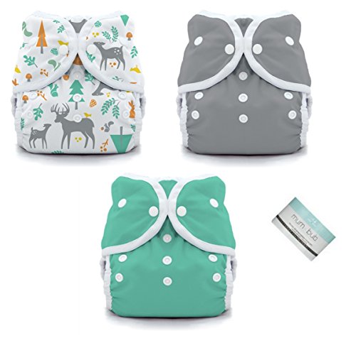 Thirsties Duo wraps are here to help stop leaks! These pliable and breathable wraps provide an ultra-comfortable waterproof cover for fitted, prefold, and flat diapers while remaining waterproof. They have a trim fit and leg gussets for advanced leak protection. Best of all, they grow with your baby so you'll only need two sizes from birth to potty training! The inside of Duo Wraps can be wiped clean between uses which allows for fewer wraps in rotation and greater affordability. This is a 3 pack of Size 1 wraps with the colors/prints as shown in the photo. Thirsties Duo Wraps are a very trim fitting cover. They are the preferred wrap for trifolded prefold diapers and over trim fitted diapers, such as their Fab Fitted diapers (not included). Mum and Bub sample included.
