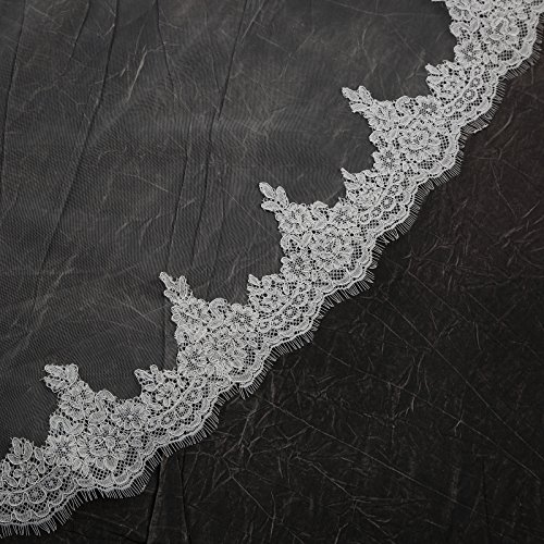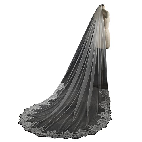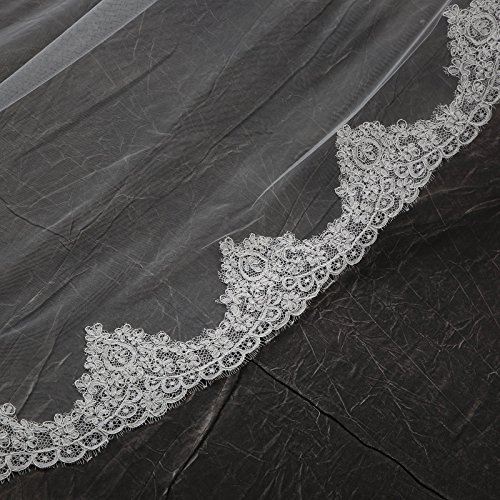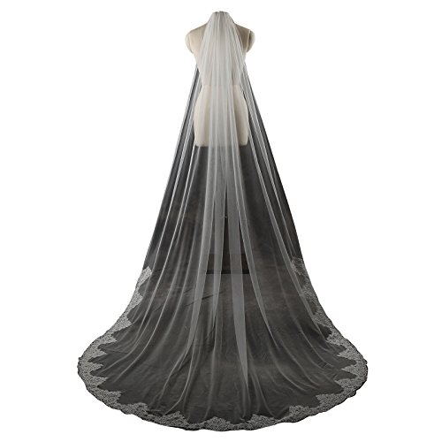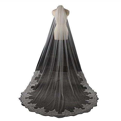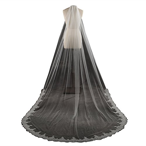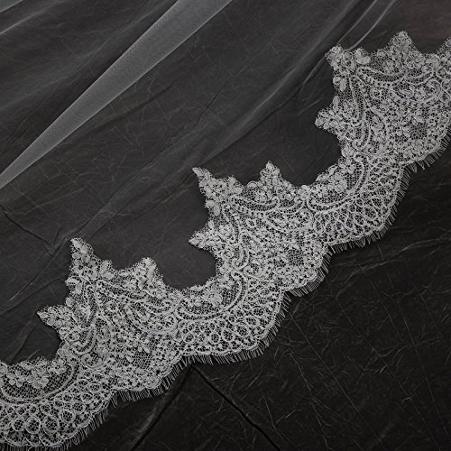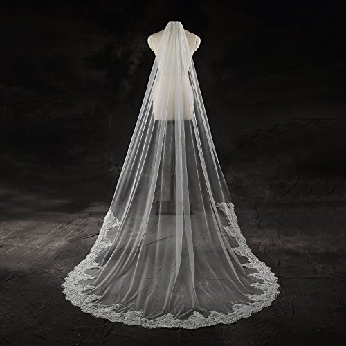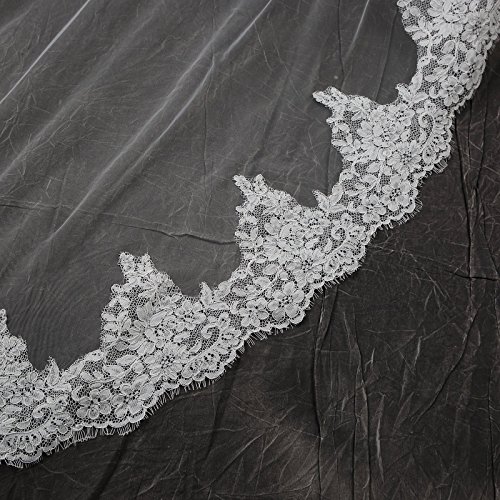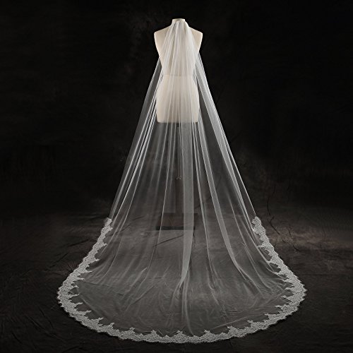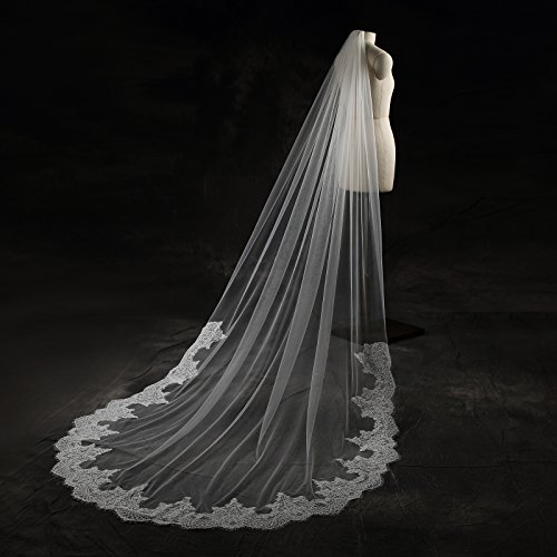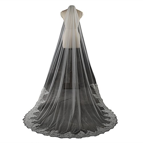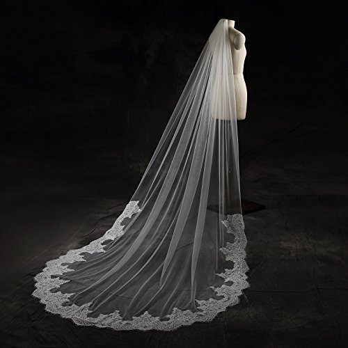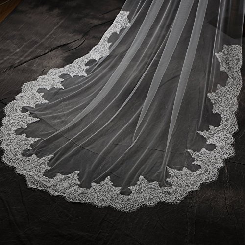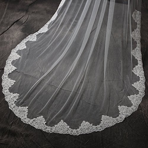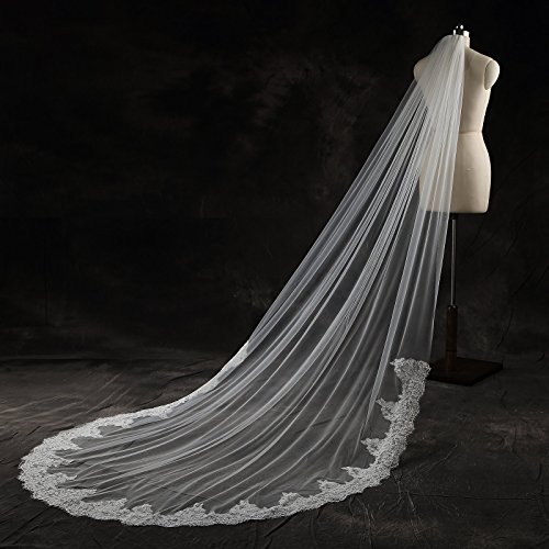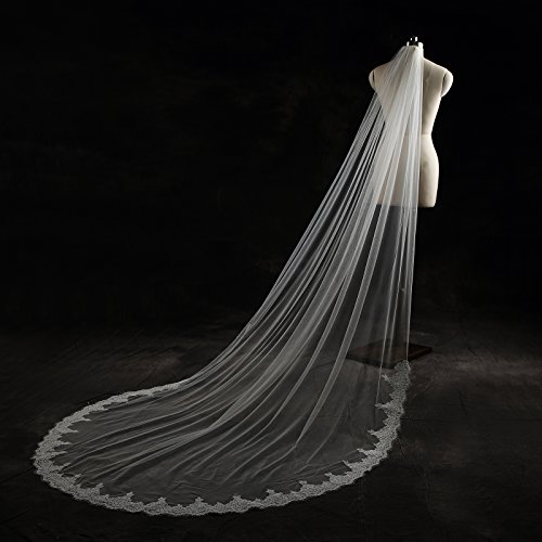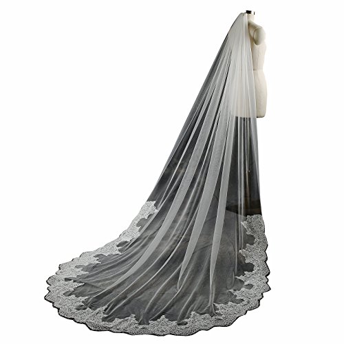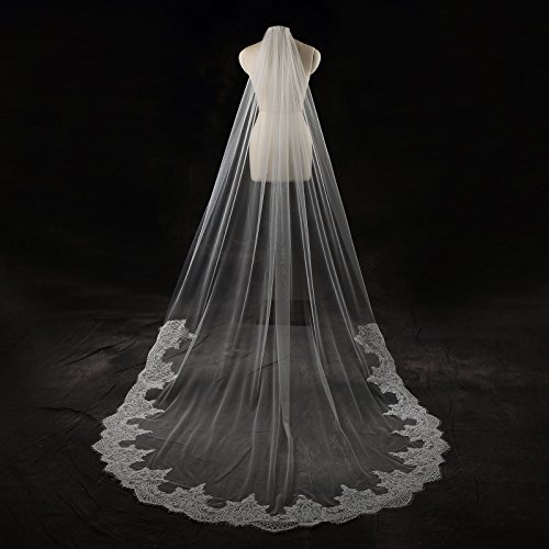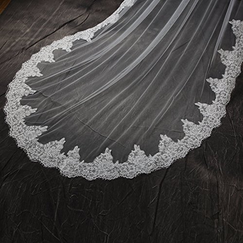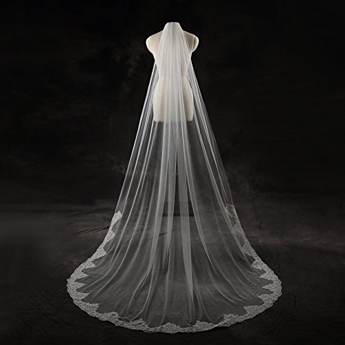 Larovias Single Tier Cathedral Lace Wedding Veil 108 inches with Metal Comb