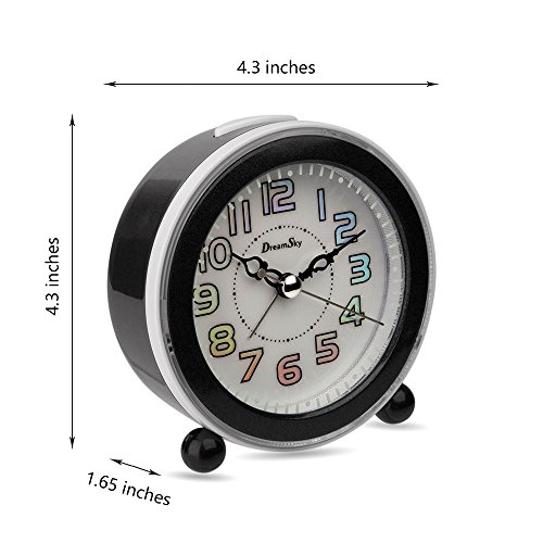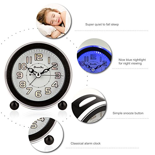 DreamSky Battery Analog Alarm Clock With Snooze And Loud Music Alarms ,Backlight ,Non-Ticking ,Battery Operated.Simple Bedside Alarm Clock For Kids