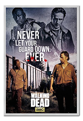 -. Title : The Walking Dead Never Let Guard Down Poster Magnetic Notice Board Silver Framed - 96.5 x 66 cms (Approx 38 x 26 inches)