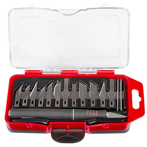 Set Includes: Ergonomic Handle, 15 Blades: No. 3, (2) No. 12, (3) No. 11, No. 1, 10, (2) No. 17, No. 4, (2) No. 7, (2) No. 17, Two Scribe Needles, Magnetic Strip to Hold Blades