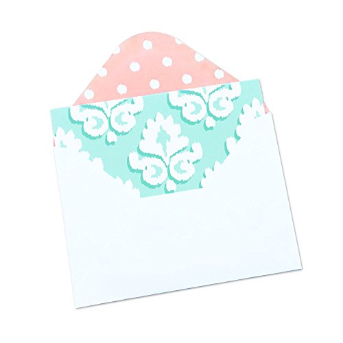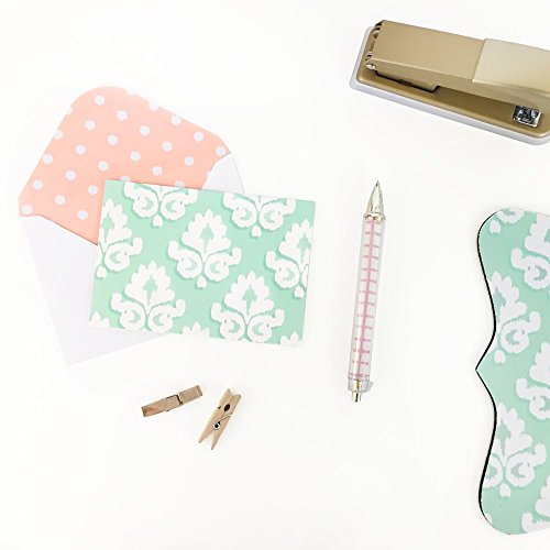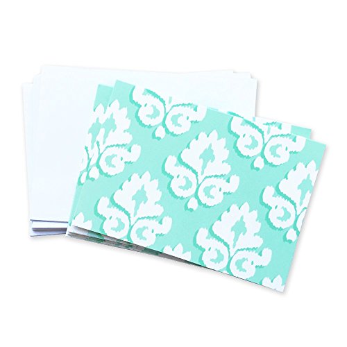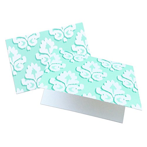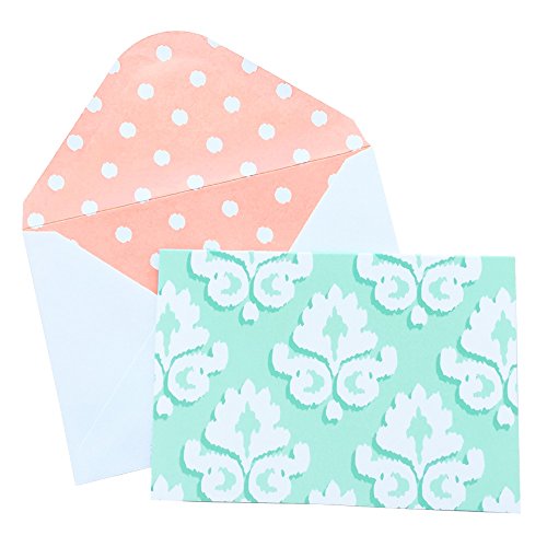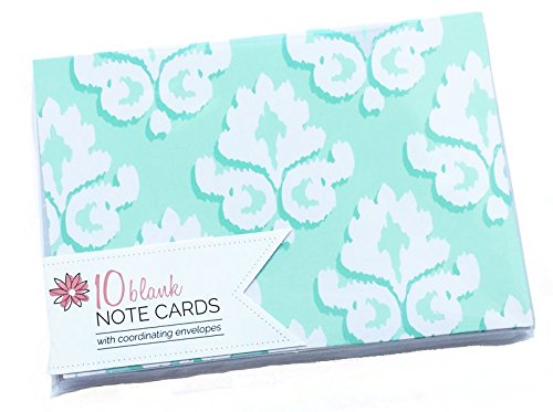 bloom daily planners Blank Note Card Set with Printed Contrasting Envelope Liners - Set of 10 - Mint Damask