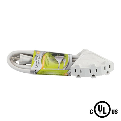 Uninex 8Ft 16/3 AWG Gauge SJTW Power Block Medium Duty Extension Cord Indoor/Outdoor With Triple ( 3 ) Outlet Power Strip UL White