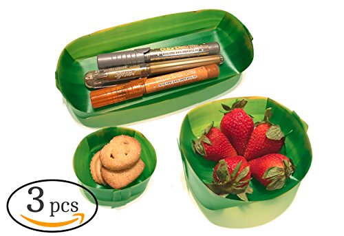 Foster Banana Leaf Design Storage Trays - Cosmetic Desk Pen Box Kitchen Office Furniture Makeup Organizer Container Pencil Cabinet - For Home Office Party Picnic - 3 Sizes in 1 Set