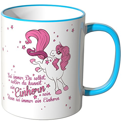 -. Feature : Exklusive Wandkings Tasse mit Spruch: Sei immer Du selbst, außer du kannst ein Einhorn sein, dann .... Made in Germany! / Keramiktasse mit farbigem Henkel in Ihrer Wunschfarbe. Sie können aus 12 Farben frei wählen. / Hochwertige Verarbeitung. Langlebige Qualität. Spülmaschinen- und mikrowellenfest. / Maße der Tasse: Größe ø 82 mm, Höhe 95 mm, Fassungsvermögen 0,3 l - beidseitig bedruckt. / Lieferumfang: 1x Wandkings Tasse mit Spruch: Sei immer Du selbst, außer du kannst ein Einhorn sein, dann ....
