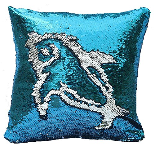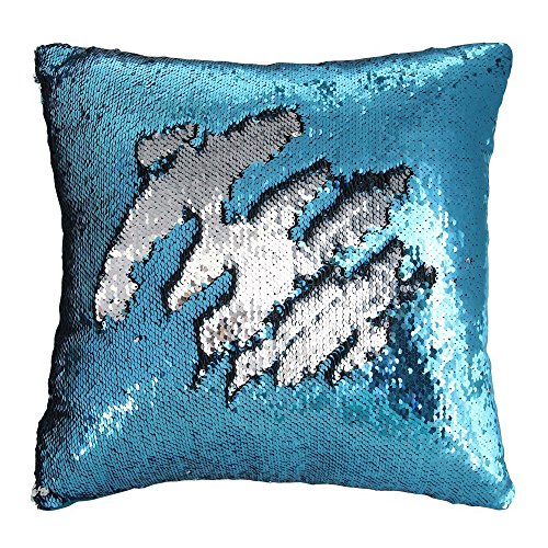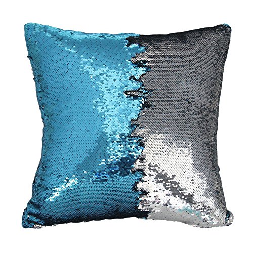 DegGod Reversible Sequins Mermaid Pillow Cases Color Changing Sequin Pillow Cover Case for Couch Decoration 16 x 16 inches (Blue and Silver)