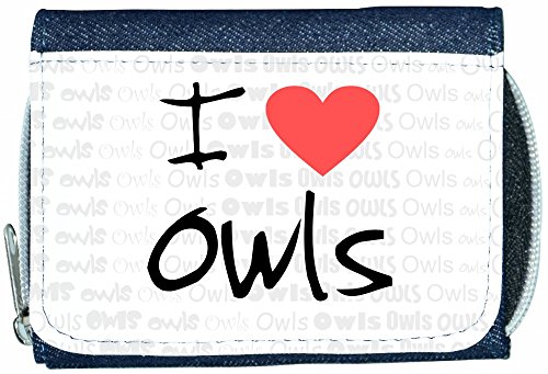 Binding : Apparel Product Description High quality wallet - I Love Heart Owls Denim Wallet. Denim back, printed front flap. Full zip opens on divided area for two coin sections. Flap area over 4/5 credit card sections, clear photograph/ID section and large note section. 0