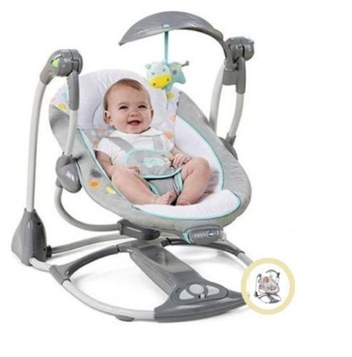 Studio : Happy Publisher : Happy Binding : Baby Product Product Description Ingenuity ConvertMe 2-Seat Swing is two must-have baby seats in one! Thanks to the EasyLock system, this swing converts easily to a vibrating seat your little one will love. Soothe baby with eight calming melodies and three nature sounds, plus five swing speeds, each with automatic timer settings of 30, 45 and 60 minutes. The toy bar pivots conveniently out of the way and features a plush toy and two additional slots for attaching more toys to keep baby engaged and entertained. WhisperQuiet operation helps baby swing without being disturbed and the patented Hybridrive technology makes batteries last up to three times longer than traditional swings. The seat pad and cushions are machine-washable and the SlimFold design folds flat to make transport and storage a breeze. The Avondale fashion collection coordinates with other must-have gear items, so look for the entire collection. 0