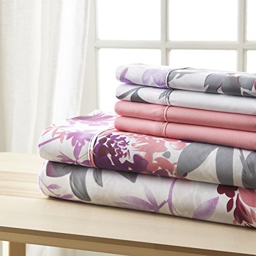 Spirit Linen, Inc Hotel 5th Ave Queen Grey Pink Floral Bellagio Home Collection Sheet Set, 6 Piece