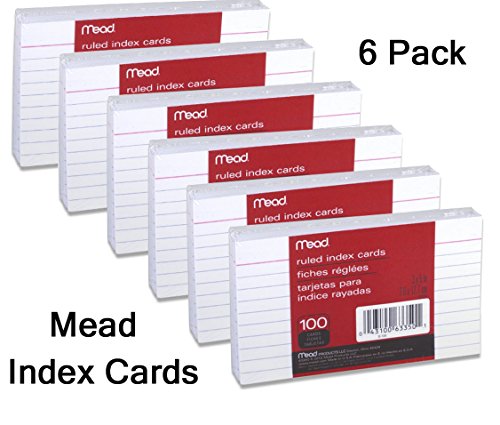 Index Cards by Mead 3 x 5 Inch, Ruled, 100 Count, White, 10 lines per card