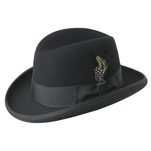 Studio : Bailey of Hollywood Publisher : Bailey of Hollywood Binding : Apparel Product Description You don't have to be a wartime consigliari or even the godfather himself to don the Bailey of Hollywood Godfather. The evocative Bailey Godfather is an iconic and widely recognized style celebrated annually within Bailey of Hollywood's Heritage Collection and indeed revered by its patronage. Bailey premium wool felt hats are made with the finest grade of 100% virgin wool fibers, denoting a distinction in finish and a superiority of style, with luxurious custom Bailey lining at that. This USA-made product features a homburg crown that you can don in class, and it won't be your last! 0