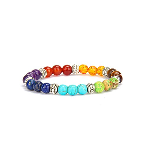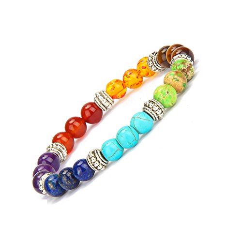VIki98 7 Chakra Crystal Gem Stone Stretch Mala Bracelet Yoga Prayer Reiki Healing energy Beads Bracelet (1PC NO.1)