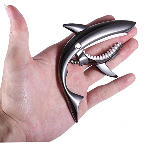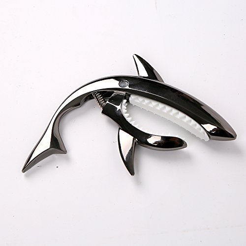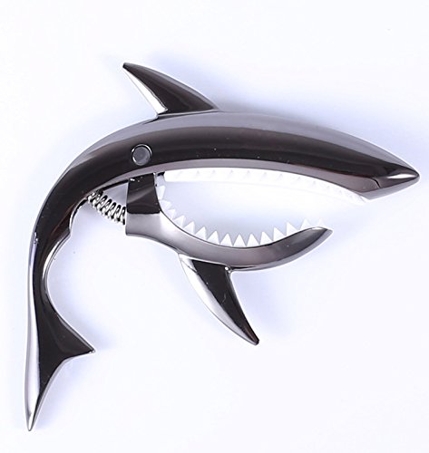 Elecguru cool shark guitar capo acoustic is built of lightweight high quality zinc alloy (aircraft grade metal),Can clamp on any fret,hold the strings nice and tight.