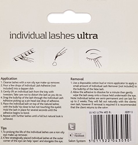 -. Binding : Badartikel -. Brand : Salon System -. EAN : 5011522043050 -. Feature : Creating sensational looking eyes has never been easier! / Semi-Permanent Individual Medium Lashes / Last up to 2 weeks -. IsAdultProduct : 0 -. Label : Salon System -. Manufacturer : Salon System -. Model : 0225112 -. MPN : 0225112 -. PackageQuantity : 1 -. PartNumber : 0225112 -. ProductGroup : Beauty -. ProductTypeName : BEAUTY -. Publisher : Salon System -. ReleaseDate : 2012-12-27 -. Studio : Salon System -. Title : Salon System Individual Bulb Free Ultra Black Medium Flare Lashes