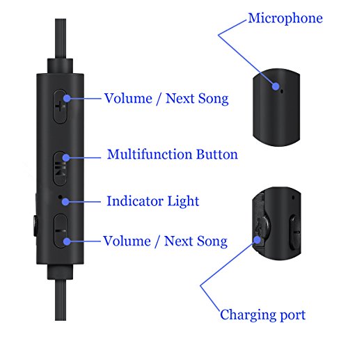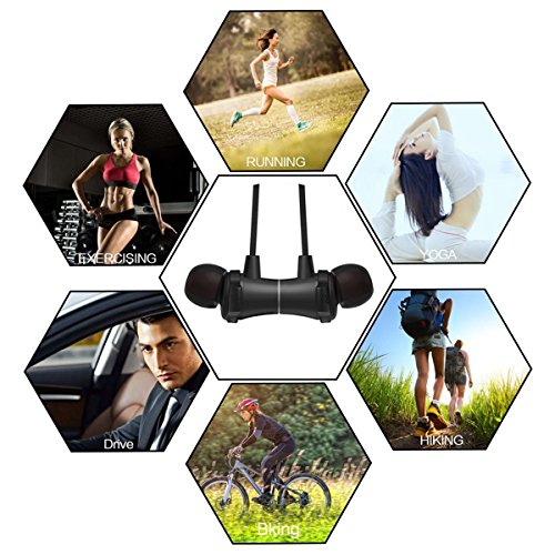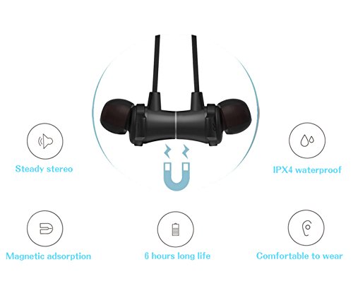-. Feature : Lightweight comfort & noise reduction HD stereo headphones: headphones weighs only 12.8g, memory rubber earplugs wear more comfortable, CVC noise reduction effect, high-quality stereo let you listen with good, enjoy the music feast. / Anti-sweat & perfect exercise headphones: whether you are in outdoor sports, running, cycling or gym can enjoy the sweat comfortable use. / Long life & fast charge: 8 hours of continuous talk time, 6 hours of music time, 200 hours of standby time, charging time only takes an hour. / Built-in headset & magnet: you can call anytime, anywhere, when you do not use the two headphones can be put together like a necklace hanging around the neck, easy to carry and storage. / Easy to connect and compatible with all kinds of Bluetooth devices: the latest Bluetooth 4.1 can enjoy fast and stable connection, support iPhone, Samsung and a variety of smart phones, iPad and other Tablet PC, there are other Bluetooth devices.