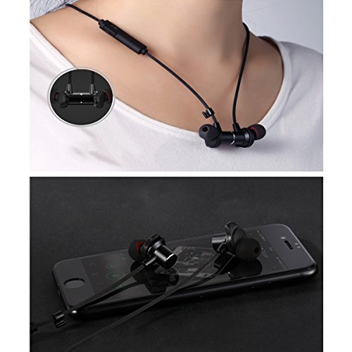 -. Title : Bluetooth Headset, Crazestar Wireless Bluetooth 4.1 Anti-sweat Smart Magnetic Headphones built-in Mic headset metal case HD stereo noise reduction Comfortable wearing earphones(Black)