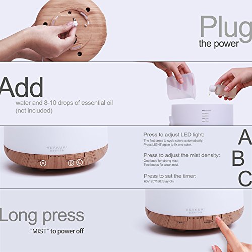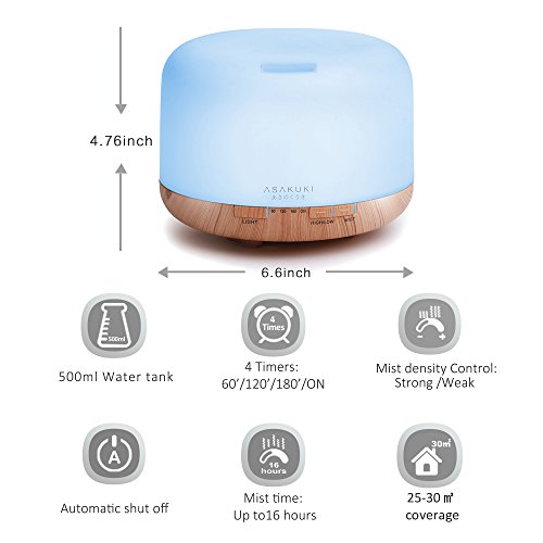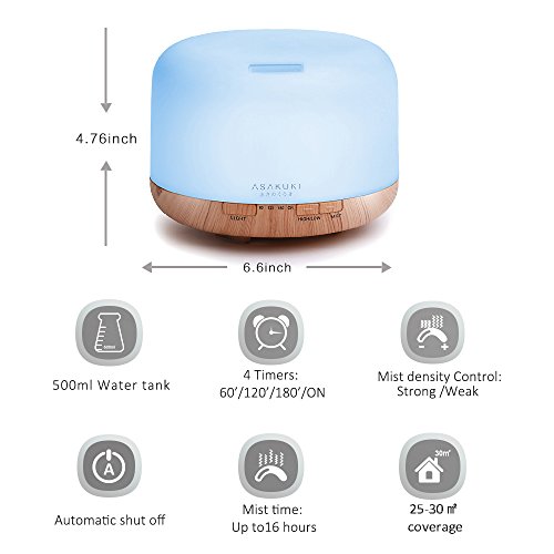 Premium Essential Oil Diffuser - Ultrasonic Aromatherapy Fragrant Oil Vaporizer What makes this essential oil diffuser superior to any conventional aromatherapy vaporizer is its many modes and functions: - Easy To Clean Large 500ml Water Tank