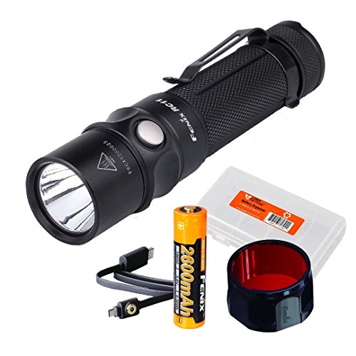 Red Filter Bundle: Fenix RC11 1000 Lumens Rechargeable Cree XM-L2 U2 LED Flashlight with Rechargeable Battery, USB Charging Cable, Red Filter and LumenTac Battery Organizer