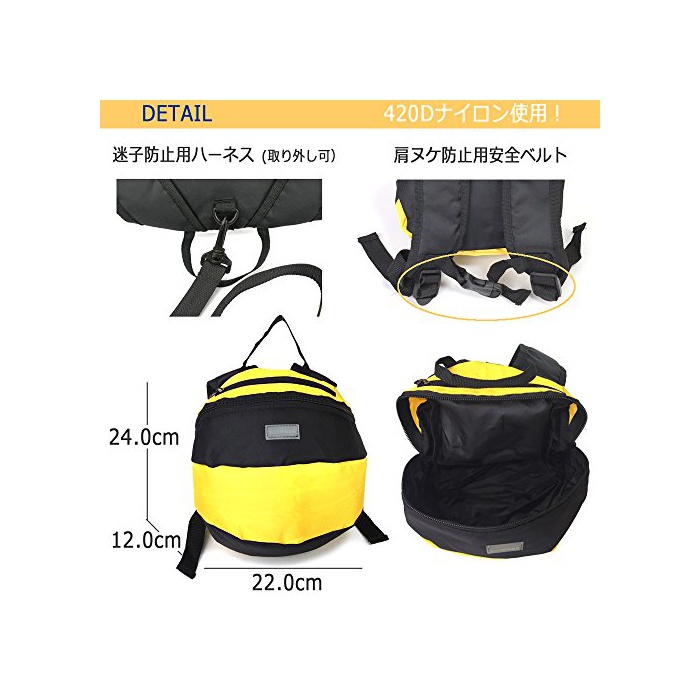 사이즈(약): W 22.0cm × H 24.0㎝ × D 12.0㎝ 미아 방지용 하네스 부착(분리가)길이 92.0㎝