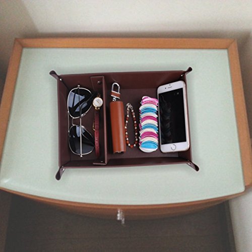 -. Title : Valet Tray,PU Leather Jewelry Organizer Watch Coin Change Case Key Tray Box