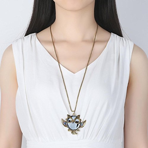 -. Title : Fashion Vintage Rhinestone Studded Owl Pattern Long Necklace