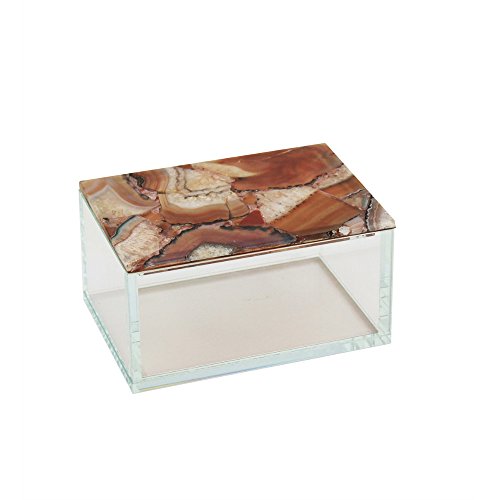 Benzara Agate Top Glass Decorative Box, Red Mix