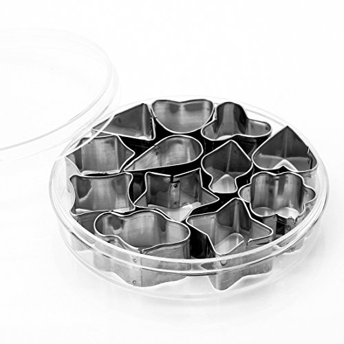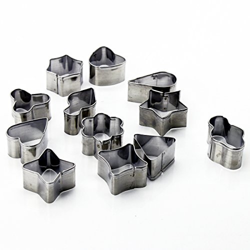 Studio : CY-buity Publisher : CY-buity Binding : Kitchen Product Description Comes in 12 different cut-out shapes as per photo shown. Ideal for cutting the vegetable / Food / Ham Cheese to various shapes in just a second, as well as for cutting and shaping kid's favorite dessert for finger-food fun or waffles and pancakes for a special occasion breakfast. Material: Stainless steel Color: Silver Each Size: Approx 3cm 0