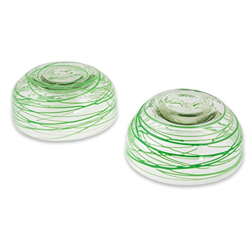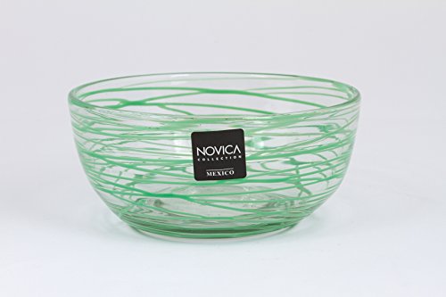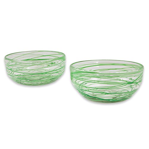 NOVICA Hand Blown Green Glass Bowls, 10 oz. 'Emerald Swirl' (pair)